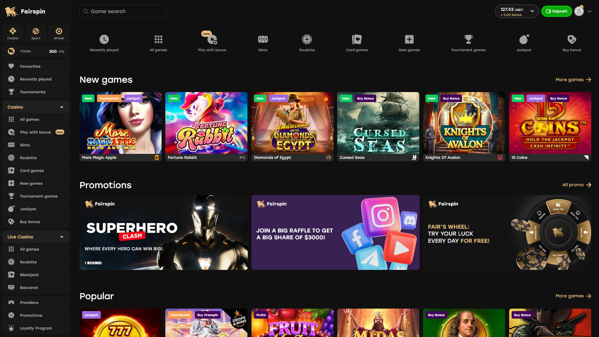 A blockchain-based loyalty program, a massive welcome bonus, and a wide variety of provably fair slots and casino games make Fairspin such a unique online casino platform. Read More...