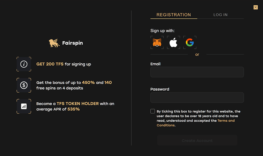 The sign-up process for Fairspin is simple and straightforward. Players just need to create an account and provide some basic information. Once the account is created, players can then deposit funds and begin playing the games offered on the platform. The sign-up process is secure and encrypted, ensuring that players' information is kept safe.