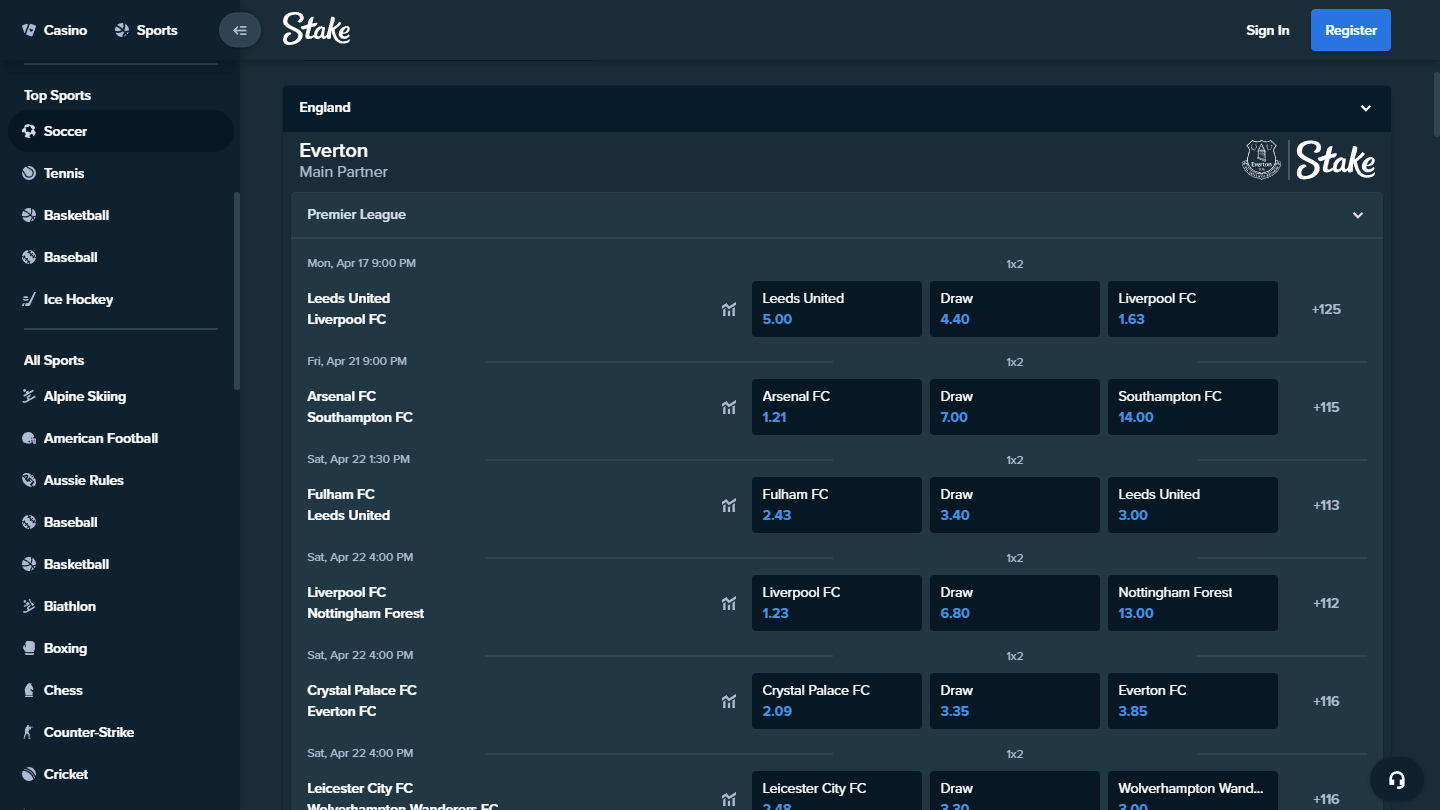 Stake.com offers a comprehensive sports betting platform, where users can place bets on a variety of sports and events. The platform covers more than 30 sports, including popular sports such as football, basketball, tennis, and baseball, as well as niche sports such as Gaelic Football, Futsal, and Table Tennis. You also don't have to limit yourself to physical sport, E-Sports have long arrived in the mainstream so it's a given that an innovative sportsbook platform such as Stake has a wide range of E-sports tournaments to bet on.